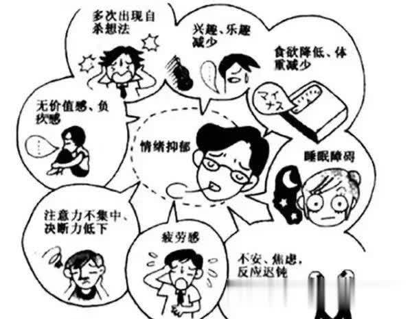 核心症状包括情绪低落和兴趣减退。这种情绪低落,是每天都有、持续存在的,感觉度日如年、生不如死。这种兴趣减退,就是对什么都提不起精神,虽然也会看书看电视,但纯粹为消磨时间,并不能从中获取快感。